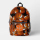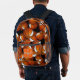 This cool basketball backpack features a random pattern of varied size basketballs turned every which way on a black background - each of the basketballs in the pattern has two recolored panels--one orange and one white - customise with the athlete's name & jersey number - by katz_d_zynes