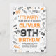 Orange White Boy Number Nine Birthday Party Invitation.