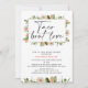 Sweet and modern taco 'bout love couples shower invitation featuring a flowering cactus and succulent frame at the top and cactus arrangement at the base of the design. This couples shower invitation also features a calligraphy heading which can be removed.