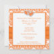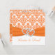 This cheerful orange and white damask couple's shower invitation has a PRINTED ribbon with a pair of PRINTED FAUX glitter and diamond jewels joined hearts on it. All the text is customisable and so is the paper choice. If there are any other items you need to make your event extra special, please email your request to niteowlstudio@gmail.com. The matching envelope and envelope seal are shown below.