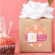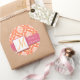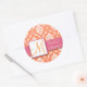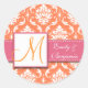 Orange White Damask Wedding Favour Sticker Pink