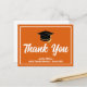 This modern orange and white custom graduation thank you postcard features classy handwritten thanks above your high school or college name for the class of 2025. Customise with your name under the black grad cap for great personalised graduate thank you postcards.