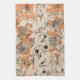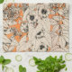 Orange White Graphic Flowers Pattern Tea Towel