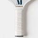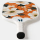 This modern pickleball paddle design features an orange, white and navy blue flower background, with your initial in bold orange text for a look that is simple and stylish, yet professional.