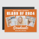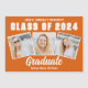 This trendy orange and white custom senior senior portrait photo collage graduate announcement magnet card features varsity letters for the Class of 2025 under your college or high school name. Customise these magnets with your favourite 3 graduation photographs.