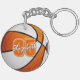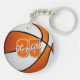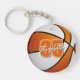 This sporty basketball themed acrylic keychain features a simple basketball graphic that has recolored alternating orange and white panels upon which you can easily customise the athlete's name in a signature (or autograph) style font atop the player's jersey number (in a varsity letter style font) - by katz_d_zynes