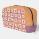 This contemporary toiletry bag design features a stunning combination of white, violet purple, and bright orange coloured contemporary squares, and circular truchet tiles pattern. The variety of whimsical geometric shapes and the stylish colour combo create a dynamic and rhythmic effect. The pattern is both ornate and elegant, with a touch of funkiness and hipster flair. There is also room to customise or personalise with a name, monogram, or initial of your choice. Whether looking for a chic and modern style or a vintage and retro trend vibe, this pattern will suit your taste and personality.