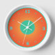 A fresh look clock design in orange and aqua/green on a white background. Simplistic tasteful clocks by Orientcourt! Match your decor with many colours and classy designs.