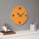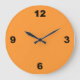 A simple wall clock with a light orange background under large black numbers marking the 12, 6, 9 and 3. For any orange decor kitchen or room. Click Customise It to add your custom text, change background colours and more.