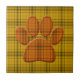 Orange Yellow And Black Plaid Dog Paw Ceramic Tile