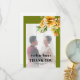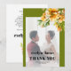 This stylish fall wedding Thank You photo card features a lovely picture of the newlyweds surrounded by an olive reen border and a rhododendron branch with orange yellow flowers, complementing the bold typography of the simple text to achieve a contemporary and chic aesthetic. Turning to the back of the card, a heartfelt 'Thank You' message awaits to express gratitude to all who shared in the special day.
