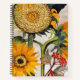 Orange-yellow sunflowers painted at various angles, with one going to seed, an artistic idea for any flower lover gardener. > Gorgeous print of a sunflower watercolor painting by artist, Harriet Brock. > Customisable: Add your own custom name or text.