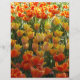 Beautiful orange and yellow tulips newly bloomed and basking in the morning sunshine.