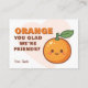 This sweet Valentine’s Day design features a smiling orange illustration with rosy cheeks, a leafy stem, and a soft heart backdrop that adds a warm and friendly feel. The playful phrase “Orange you glad we’re friends?” uses a fun fruit pun that’s perfect for kids, classmates, and school Valentine exchanges. With its bright colors, cheerful character, and clean layout, this design feels approachable, happy, and kid-friendly. A customizable name line makes it easy to personalize, creating a thoughtful and fun Valentine that celebrates friendship in a simple, charming way.
