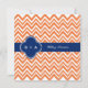 Orange chevron pattern with royal blue accent. Orange and white zigzag pattern. Wedding invitations.