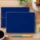 Orange chevron pattern inside the envelope. The exterior of the envelope is royal blue.