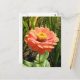 This pretty postcard features a detailed photograph of a pretty orange Zinnia flower. The photograph was taken using macro photography and shows the delicate beauty of the orange petals and yellow centre of this beautiful flower.