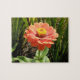 This awesome puzzle features a detailed photograph of a pretty orange Zinnia flower. The photograph was taken using macro photography and shows the delicate beauty of the orange petals and yellow centre of this beautiful flower.