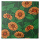 Orange Zinnia flowers, green leaves on dark green Ceramic Tile
