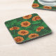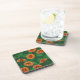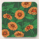 Orange Zinnia flowers, green leaves on dark green Coaster