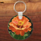This beautiful keychain features a detailed photograph of a pretty orange Zinnia flower. The photograph was taken using macro photography and shows the delicate beauty of the orange petals and yellow centre of this beautiful flower.