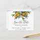 Save the date postcard featuring beautiful watercolor oranges with green leaves. Find matching items in our shop or contact us.