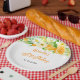 This beautiful and elegant plate features watercolor oranges, daisies and foliage. The text combines handwritten script and serif fonts for a stylish and modern look. This is perfect for a spring or summer rustic birthday.