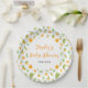 This beautiful and elegant plate features watercolor oranges, daisies and foliage. The text combines handwritten script and serif fonts for a stylish and modern look. This is perfect for a spring or summer rustic baby shower.