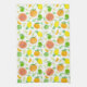 A bright and cheerful kitchen towel decorated with an all over citrus fruit pattern with oranges, lemons, limes and more hand-painted with watercolor. Pretty gift or something new for your kitchen!