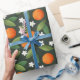 Oranges, Green Leaves and White Flowers Pattern Wrapping Paper