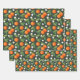 Oranges, Green Leaves and White Flowers Pattern Wrapping Paper Sheet