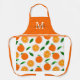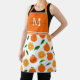 This monogram apron features a watercolor orange pattern with a solid orange top where your initial and name can be added.