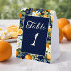 Add a refined finishing touch to your celebration with this navy blue and orange floral table number card, printed on both sides for easy visibility from any angle. Featuring a rich deep-blue centre framed by vibrant oranges, soft white florals, and lush greenery, this design blends classic elegance with a fresh, celebratory feel. Graceful script typography paired with a clear numeral ensures each table is easy for guests to find while enhancing the overall décor. Perfect for milestone birthday celebrations, elegant dinner parties, garden gatherings, or coordinated birthday events, this double-sided table number card complements floral party décor beautifully.