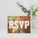 This RSVP card design features a pattern that's like a orange/yellow mist or haze. The address and RSVP form are customisable.