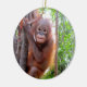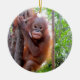 Make your next holiday ornament one that helps save the lives of wildlife orphans. Little orangutan orphan Uttuh peers out from a small tree in the rainforest where a human caretaker at OFI carefully watches her progress.