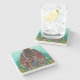 The coasters are gorgeous, a quality feel and heavy weight. They look like a precious archeological find. A rustic stone juxtaposed with a modern floral black and white print. I like the way the print goes slightly imperfect on the cut stone edges giving them a kind-of natural beauty.