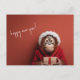 This New Year / Christmas postcard features a cute orangutan in Santa costume presenting a gift. Great humourous choice for sending new year or Christmas related wishes to your loved ones.