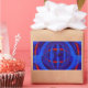 Sticker with a fantasy abstract design in shades of blue and red featuring a glowing reflective 3D orb. A customisable design for you to personalise with your own text, pictures and ideas. Created using an original photograph and digital techniques by Jess Perry.
