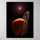 This artist's concept of a gas giant planet orbiting a red dwarf K star shows a planet has not been directly imaged, but its presence was detected in 2003 microlensing observations of a field star in our galaxy. Gravitational microlensing happens when a foreground star amplifies the light of a background star that momentarily aligns with it. Follow-up observations by Hubble Space Telescope in 2005 separated the light of the slightly offset foreground star from the background star. This allowed the host star to be identified as a red dwarf star located 19,000 light-years away. The Hubble observations allow for the planet's mass to be estimated at 2.6 Jupiter masses. The characteristics of the lensing event show that the planet is in a Jupiter-sized orbit around its parent red star. The rings and moon around the gas giant are hypothetical, but plausible, given the nature of the family of gas giant planets in our solar system. Image credit: NASA,ESA and G. Bacon (STScI)