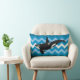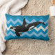 Orca Killer Whale Blue Chevron Throw Pillow: An orca "killer whale" swimming through a blue chevron zigzag ocean.