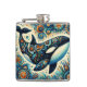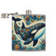 Orca Killer Whale Floral Whimsical Nautical Beach Hip Flask