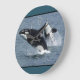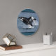 Two killer whales or Orca (Orcinus orca) breaching, in the north Pacific Ocean near the Aleutian Islands of Alaska. Cool wallclock with faded / worn style numbers laid over the photo. You can change the sea green background colour if you like by using the customise feature (you may have to scroll down a bit to see the background colour palette).