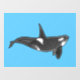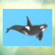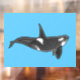 Orca Line Art Design Window Cling on a blue background.