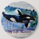 Watercolor drawing inspired by orca. "Life matters" is a message to all nature lovers people who long to live in harmony with nature, to stop animal killing and save the oceans.