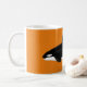 Orca mug on orange. Contemporary design