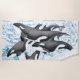 Orca Whale Family Vintage Map Beach Towel
