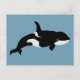 Orca Whale Illustration Cetacea Blue Postcard