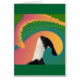 Orca Whale Spy Hops to sky swirling in bright orange, teals and green.