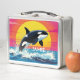 This is a standard metal lunchbox that appears to work just fine. We designed this box ourselves with an uploaded photo and custom text on the front and back. It looks absolutely beautiful except the front of the lunchbox is not centered like it shows in the photo. The print borders don't align with the inset flat part of the box where the preview photo online showed it perfectly centered in there. The back looks nice and centered though.