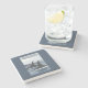 The coasters are gorgeous, a quality feel and heavy weight. They look like a precious archeological find. A rustic stone juxtaposed with a modern floral black and white print. I like the way the print goes slightly imperfect on the cut stone edges giving them a kind-of natural beauty.